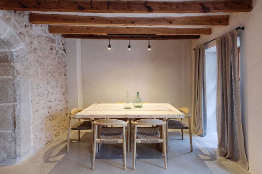 This over 200 year-old village-house is situated in an absolutely central location in the village of Alaró. A lovingly carried out, high-quality renovation has caused it to shine in a new splendor. Beautiful old features such as stone arches, natural stone walls, wooden doors, and colourful, carefully-restored tiles in combination with modern, comfortable, and high-quality elements create a unique atmosphere of well-being.
