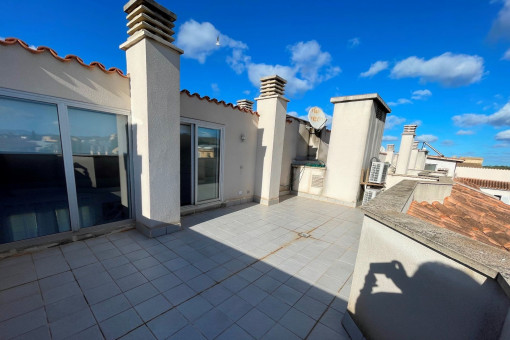 It is fully-furnished and ready for immediate occupation. Its living space is distributed over a living/dining area with access to the roof terrace via a designer-staircase, a further terrace, a fully-equipped kitchen, 2 double and one single bedroom, and 2 bathrooms, one of which is en suite with a bathtub, the other with shower and high-quality partitions.