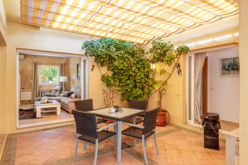 A special highlight is the spacious 5 x 5 m patio with a retractable awning and custom-made PVC double-glass doors. All doors can be fully retracted into the wall, ensuring excellent ventilation while providing complete privacy.