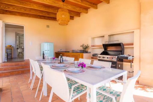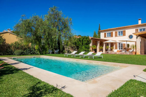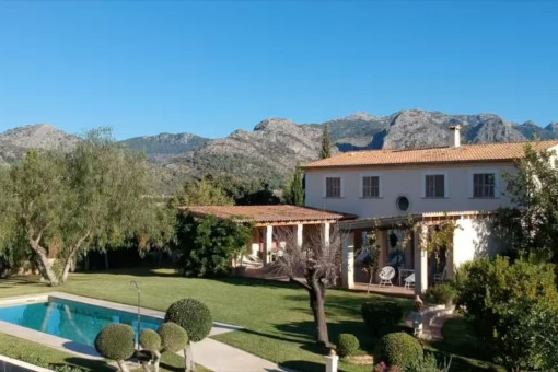 This well-kept chalet in Sa Coma, a village belonging to the municipality of Bunyola, is only about 20 minutes from Palma. The elevated location offers panoramic views as far as the bay of Palma. The house has a living area of around 260 sqm and stands on a fully fenced plot of approx. 2,400 sqm. The spacious outdoor area includes a beautifully landscaped garden, a large saltwater pool measuring 11 x 4 m and a U-shaped terrace equipped with garden furniture and a barbecue.