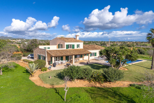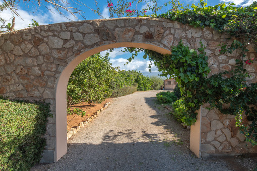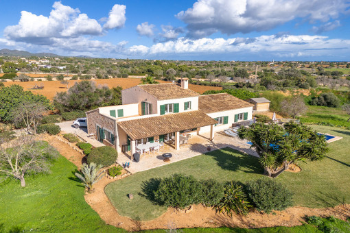 Nestled in lush greenery with many palm trees, this finca presents itself as a charming country house. Here, traditional architecture is harmoniously combined with the Mediterranean surroundings, where natural stone facades and marble cladding contribute.