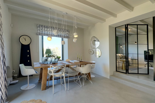 This exclusive finca in the mountains of Son Font near Calvià combines Mediterranean tradition with modern luxury and the highest level of living comfort. As soon as you enter, you can feel the successful combination of timeless architecture and the finest furnishings that make this property something very special.