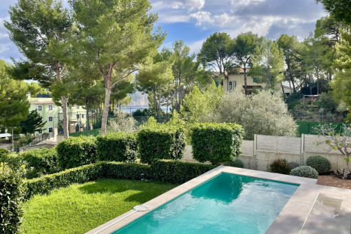 The outdoor areas impress with well-maintained Mediterranean gardens, spacious sun terraces, a covered pool area, and numerous outdoor retreats. Partial sea views, separate living units, and premium features make this property a rare opportunity to acquire a luxury villa in one of Mallorca’s most exclusive locations.
