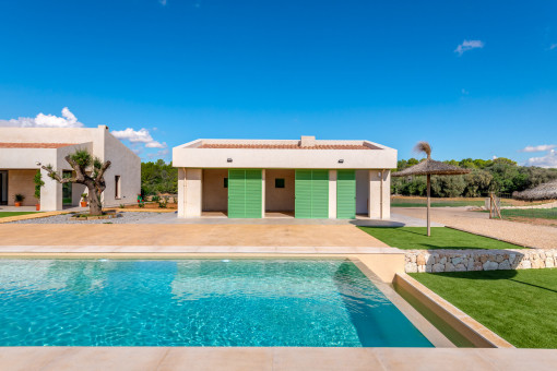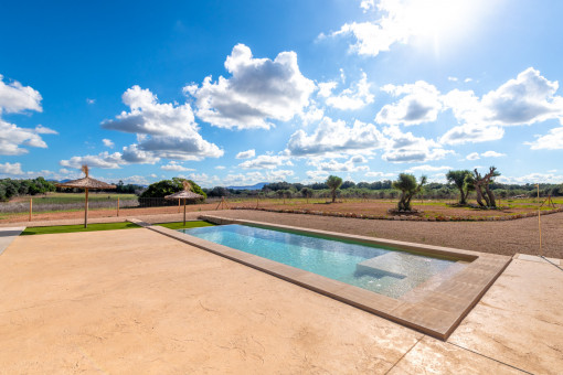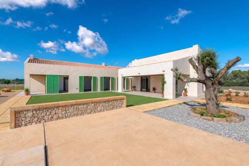 This modern newly built finca is located in the southeast of Mallorca, just 15 minutes from Campos, offering absolute privacy in the midst of unspoiled nature. From the property, you can enjoy breathtaking panoramic views across the countryside, reaching as far as the famous monastery hill of San Salvador. The surrounding area is ideal for nature lovers, with numerous hiking trails leading through the beautiful landscape, including a nearby Talaiot village.