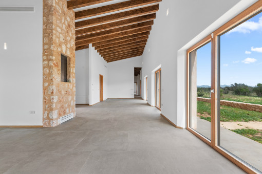 South of Campos, towards the popular natural beach of Es Trenc, this newly built finca is set in a quiet rural environment with far-reaching views across the Mallorcan countryside to Sant Salvador. The location offers a high degree of privacy while maintaining good access to the coast and nearby towns.
