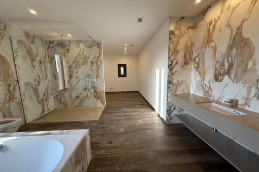 The finca has 4 spacious bedrooms, each with its own en-suite bathroom. All bedrooms also have direct access to the outdoor terraces - perfect for greeting the sun in the morning or letting your gaze wander over the pool and the well-tended garden in the evening.