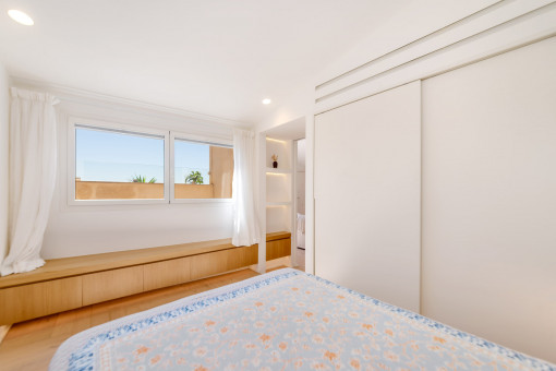 The large sea view terrace of approx. 20 sqm offers plenty of space for cozy hours under almost all-day Mediterranean sun, while enjoying a fantastic 180-degree view of the bay of Palma!
