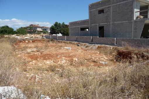 This beautiful building plot is located in a quiet area of Porto Colom. There is a finished project for a detached house and construction can be started quickly. A total of 4 houses are being built, three of which are already under construction. Once all the houses have been completed, it will be a small community of owners. There will be a connection between the houses by means of a concrete strut. According to the project, a house with a pool and garage can be built.