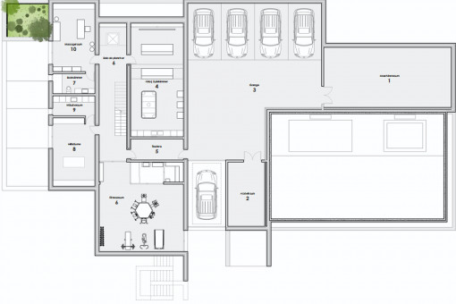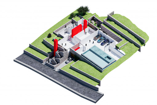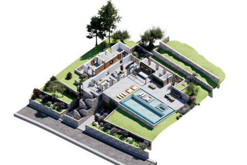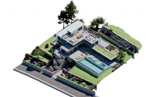 The project is located in Cala Llamp, one of the most exclusive areas in the southwest of Mallorca, in the municipality of Andratx. The plot covers 2,717 qm and lies in a quiet residential area with low-density development, close to the coast and with unobstructed sea views. Absolute privacy, excellent connections and proximity to first-class services make this location particularly attractive.