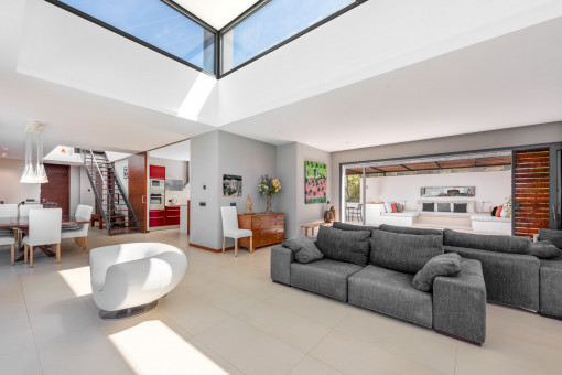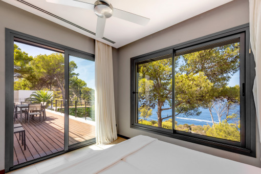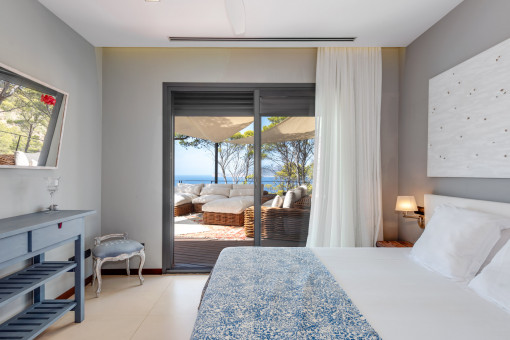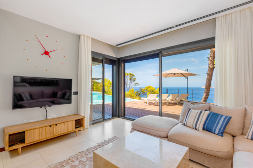 This exceptional villa is enthroned in one of the most exclusive locations in Port d'Andratx and opens up to an endless panorama over the open sea. Here you can experience magical sunsets that turn every evening into an unforgettable spectacle - nestled in absolute tranquillity and complete privacy.