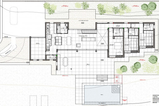 They are distributed as follows: A total of 125.52 sqm of outdoor terraces and a veranda of 27 sqm from which to enjoy some of the most beautiful sunsets in Mallorca. The impressive pool with an area of 32 sqm blends harmoniously into the surroundings and offers a refreshing oasis on warm days.