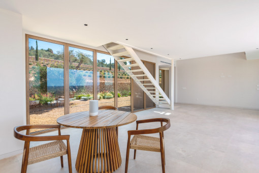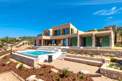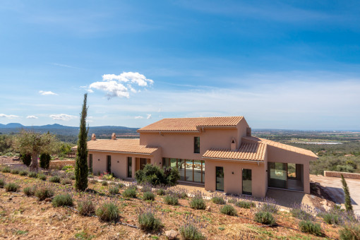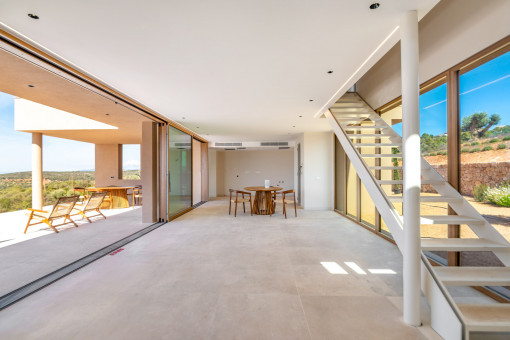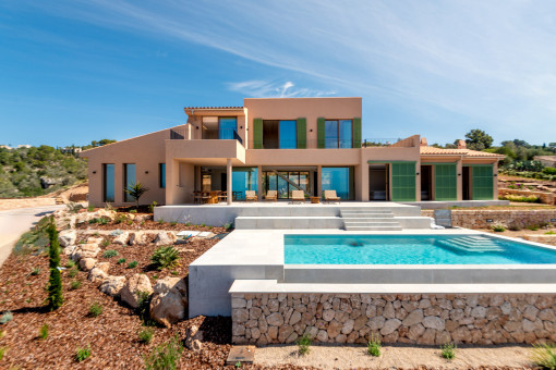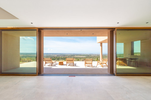 This luxurious new-build villa offers you complete privacy and undisturbed tranquillity. Upon entering the property, a breathtaking panoramic view of the beautiful landscape and the bay of Palma opens up.
