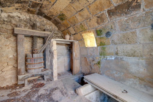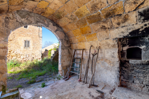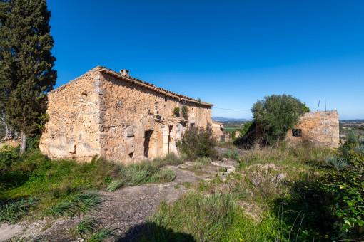 In an elevated position and surrounded by nature, this old farmhouse preserves the essence of traditional Mallorcan architecture. The house, with two floors and old agricultural outbuildings attached, maintains original elements such as the front threshing floor with the remains of a wine press, a cistern dug into the rock and structures linked to its rural past.