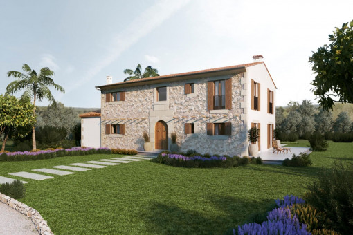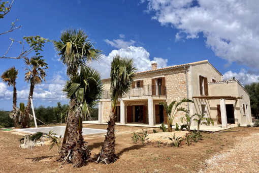 A newly built finca for sale near Santanyí, combining modern living with Mediterranean charm. The property sits on a plot of approximately 22,500 m² and offers great privacy within a typical Mallorcan landscape.