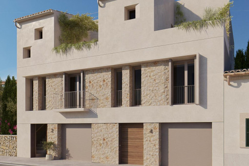 A high-quality new construction project with 2 exclusive townhouses is being built in the town center of Santanyí. Construction is scheduled to start in February 2026. The location impresses with its tranquillity in a cul-de-sac and at the same time with its immediate proximity to the plaza and the historic town center.
