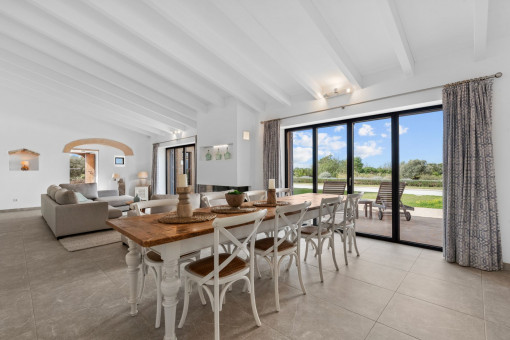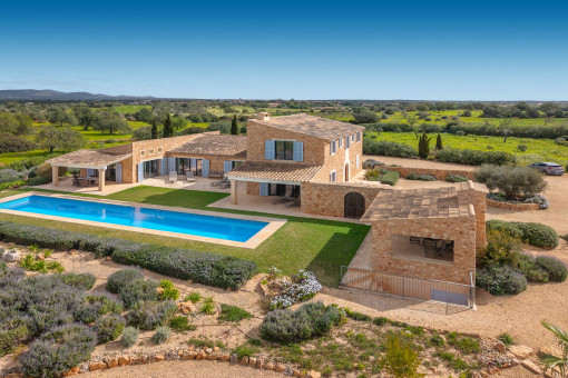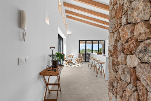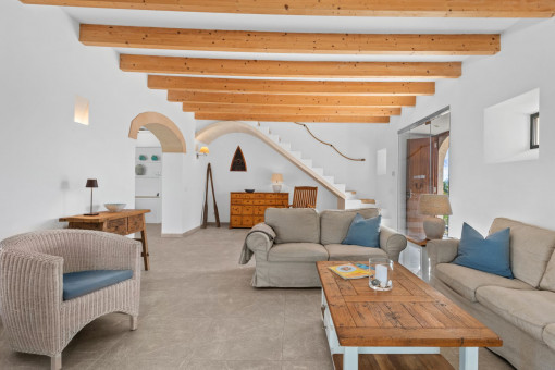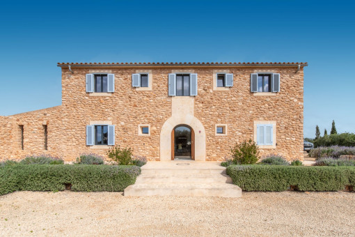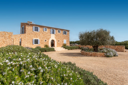 This enchanting natural stone finca is set on a spacious plot of approx. 14,200 sqm and combines Mediterranean charm with modern living comfort. Surrounded by unspoiled nature, you can enjoy breathtaking 360-degree panoramic views thanks to the floor-to-ceiling windows - a place where peace and space are palpable. The idyllic village of Ses Salines is just a few minutes away.